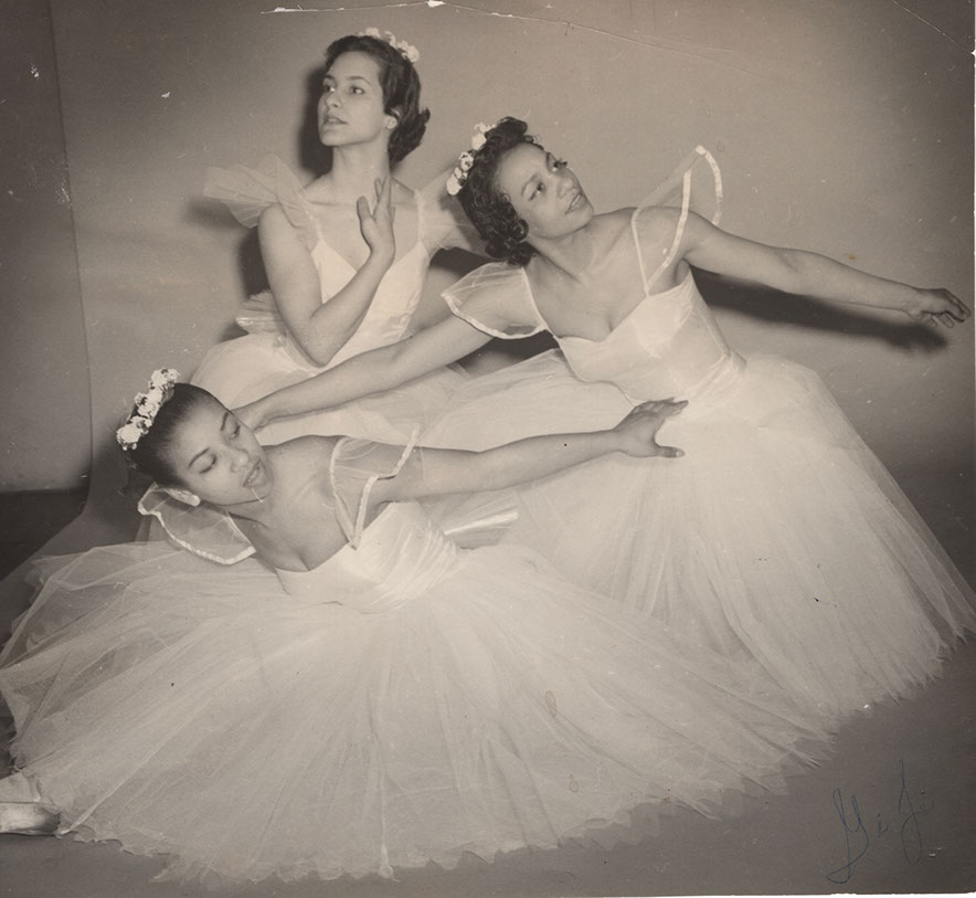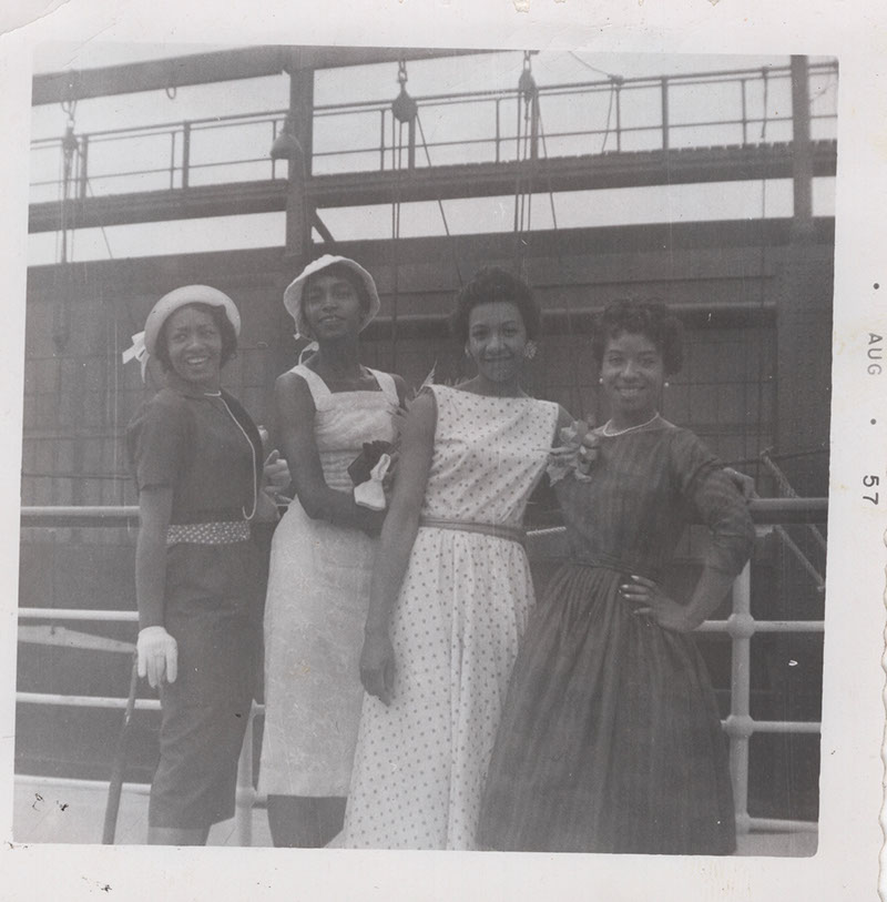 Frances Jimenez, Cleo Quitman, Dorothey Jimenez, Delores Browne aboard the SS. France, with the New York Negro Ballet