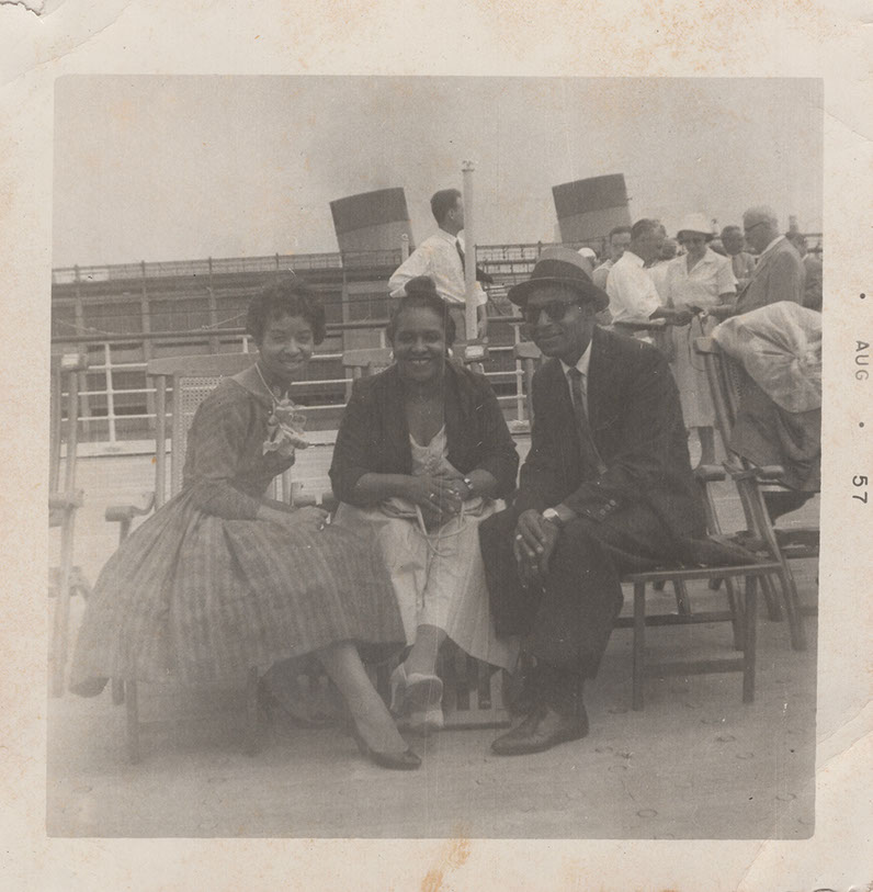 D. Browne sets sail for England with New York Negro Ballet. Parents see her off